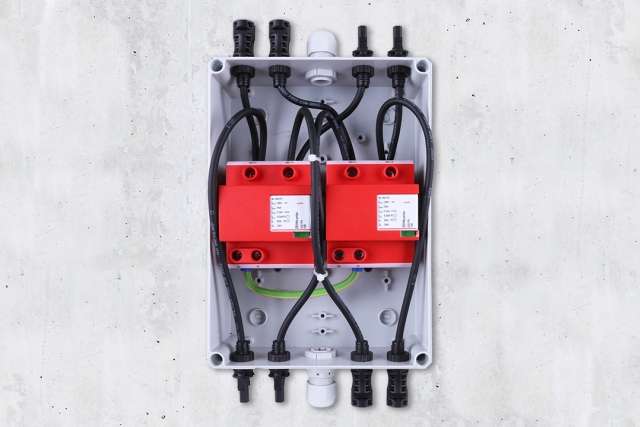 Sicher, platzsparend und mit Push-in-Doppelklemmen schnell montiert: DEHNguard MP YPV schützt die Photovoltaikanlage im Wohngebäude.
