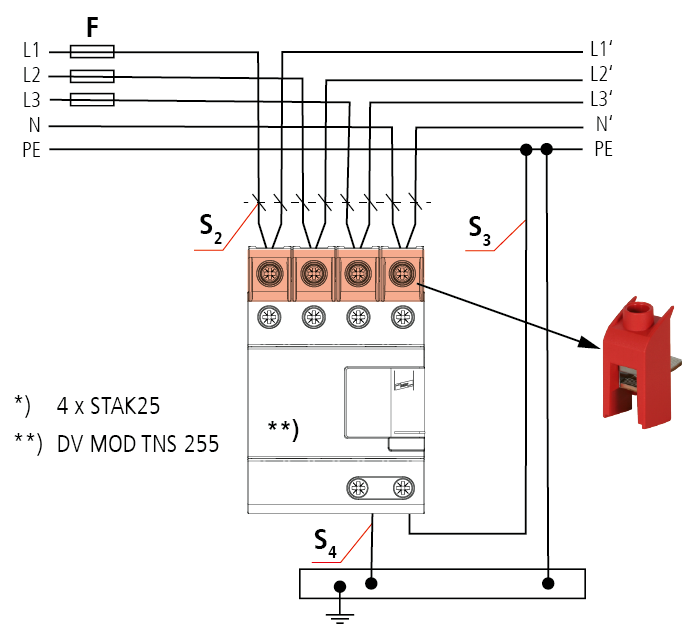 Im Vergleich zum Vorgängermodel weist DEHNventil M2 die halbe Baubreite auf. Die gewohnte Durchgangsverdrahtung mit Doppelklemme ist daher nicht mehr möglich. Wenn Sie diese Anschlussart bevorzugen, nutzen Sie STAK 25 (Art.-Nr. 952589) zur sicheren Führung von Betriebsströmen bis zu 100 A.