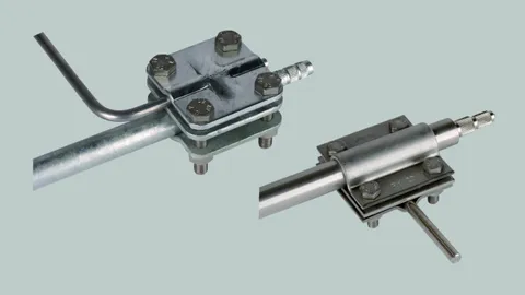 Earth rods for installing single earth electrodes for lightning protection systems and plants including connecting clamps.