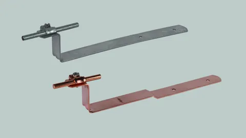 Pour les conducteurs le long de la faîtière il faut prévoir une largeur d'env. 15 m, les conducteurs de descente nécessitent une largeur d'env. 10 m sans supports supplémentaires. Les supports de serrage doivent être fixés à la construction du toit (contre-lattis et entretoises) avec boulons et rondelles.