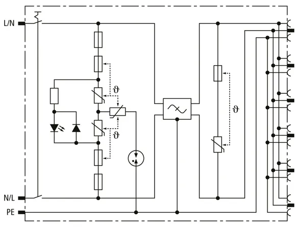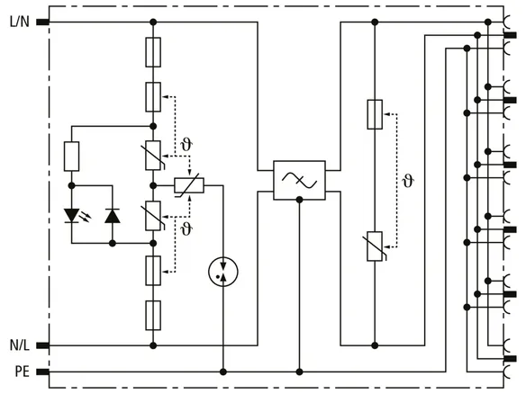 | Samlet afledestødstrøm (8/20 µs) [L+N-PE] (Itotal ) | 5 kA |