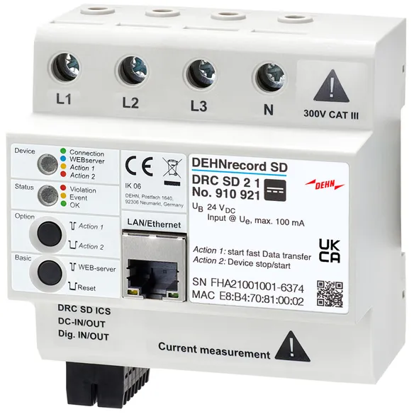 | Måleområde impulsstrøm (8/20 µs) (10/350 µs) | 4-100 kA |
