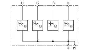 | Lynstødstrøm (10/350 µs) [L1+L2+L3-PEN] (Itotal ) | 22,5 kA |