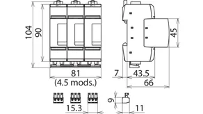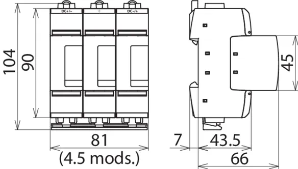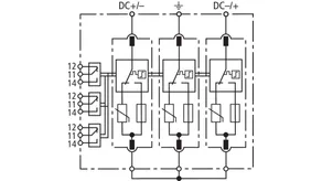 | Nominel afledningsstrøm (8/20 µs) [(DC+/DC-) --> PE] (In ) | 12,5 kA |