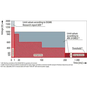 | *1) Derating afhængig af "For-strøm" (stationær afledningsstrøm) og omgivelsestemperaturen *2) Derating afhængig af den omgivende temperatur, se betjenings- og monteringsvejledning *3) fast 60 V i manuel frakoblingsfunktion med ekstern forsyning |