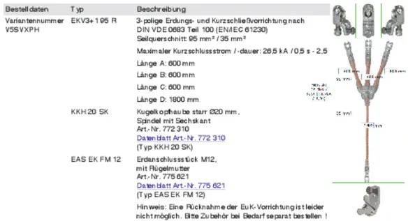 | Seilquerschnitt Cu | 150/50 mm2 |