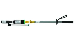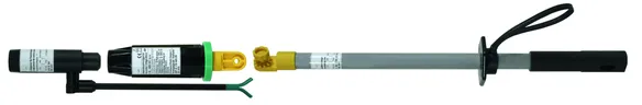 Der Abstands-Spannungsprüfer ASP mit dem E-Feldsensor der Kategorie „L“ ist mit dem grünen Ring so an die letzte, geerdete Schutzarmatur anzulegen, dass der E-Feldsensor in Richtung des am anderen Isolatorenende befestigten Leiterseiles zeigt.
