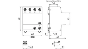 | Blitzstoßstrom (10/350 µs) [L-N]/[N-PE] (Iimp ) | 7,5 / 30 kA |