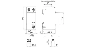 - Platzsparende Funkenstreckentechnologie mit nur 1 TE / Pol ermöglicht kompakte Ausführung