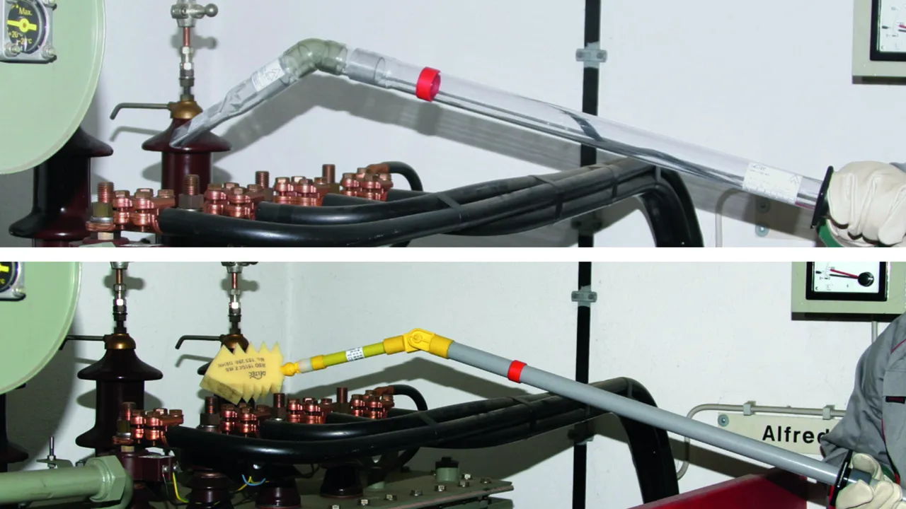 - Kombination aus Trocken- und Feuchtreinigung zum Reinigen unter Spannung