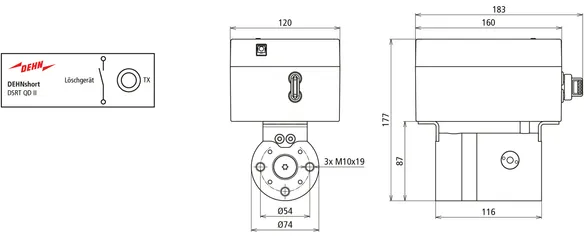 | Löschgeräteausgänge | LWL (entspr. min. 43 mA) (2x TX) |