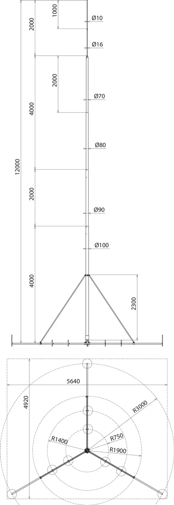 | Platzbedarf Stativ | 4920 x 5640 mm |