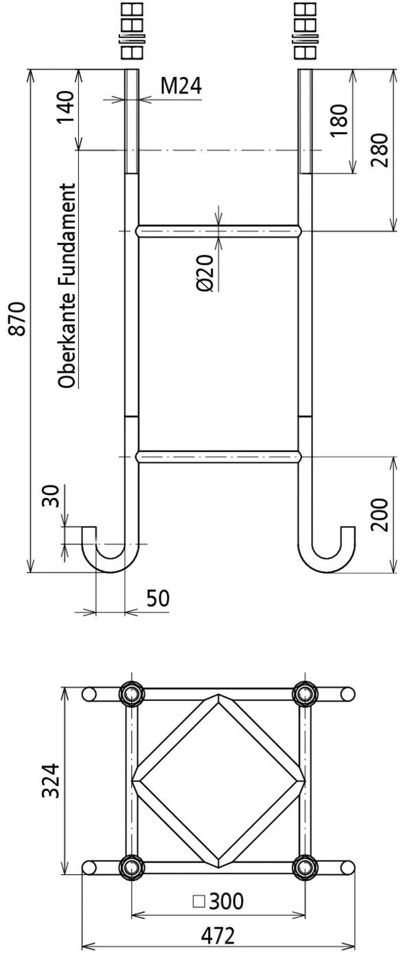| Ausführung Gewindebolzen | 4x M24 (300 x 300 mm) |