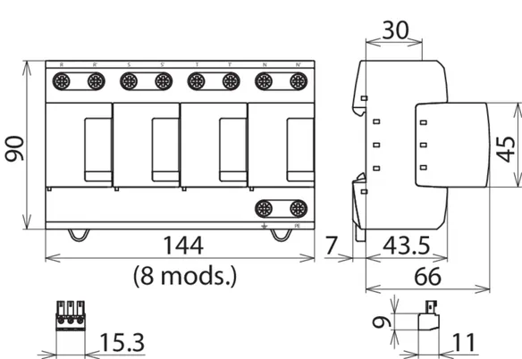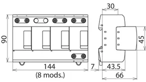 | Nominal discharge current (8/20 µs) [R+T+S+N-PE] (In ) | 100 kA |