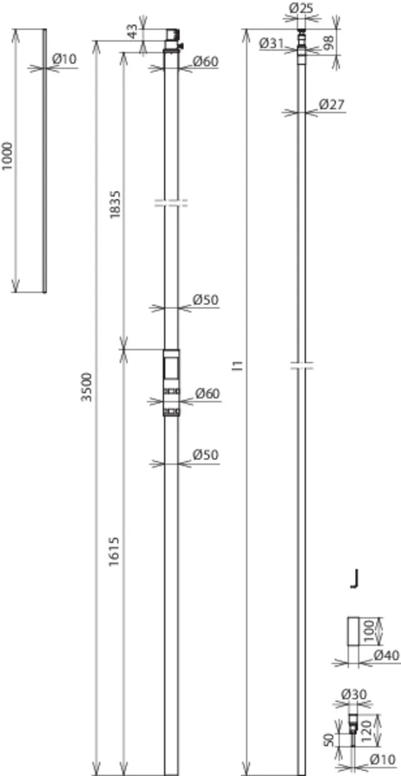 HVI power Conductor inside supporting tube with air-termination rod, 3500 mm long, GRP / StSt