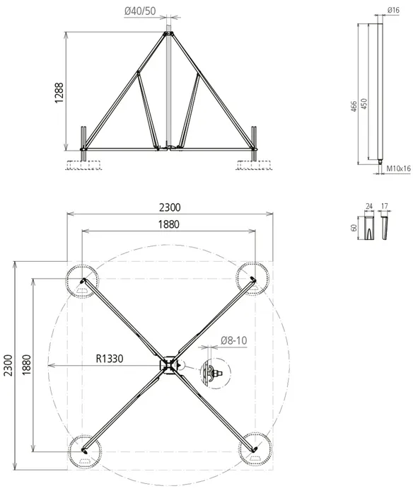 | Number of concrete bases | 3-12 blocks, 17 kg each |