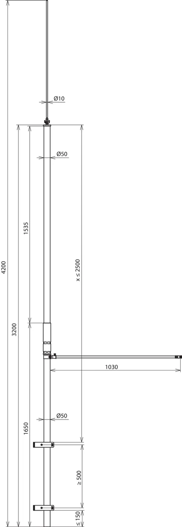 | Length of supporting tube | 3200 mm |