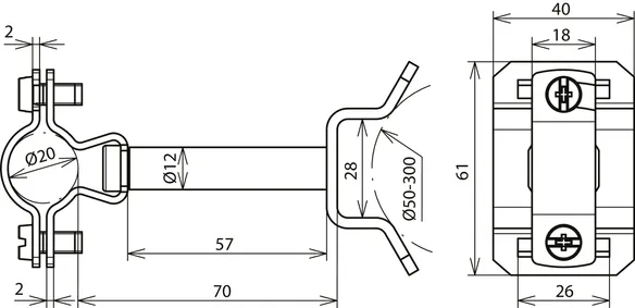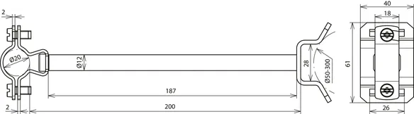 Conductor holder for HVI Conductors in hazardous areas with spacer (70 mm), to be fixed to pipes