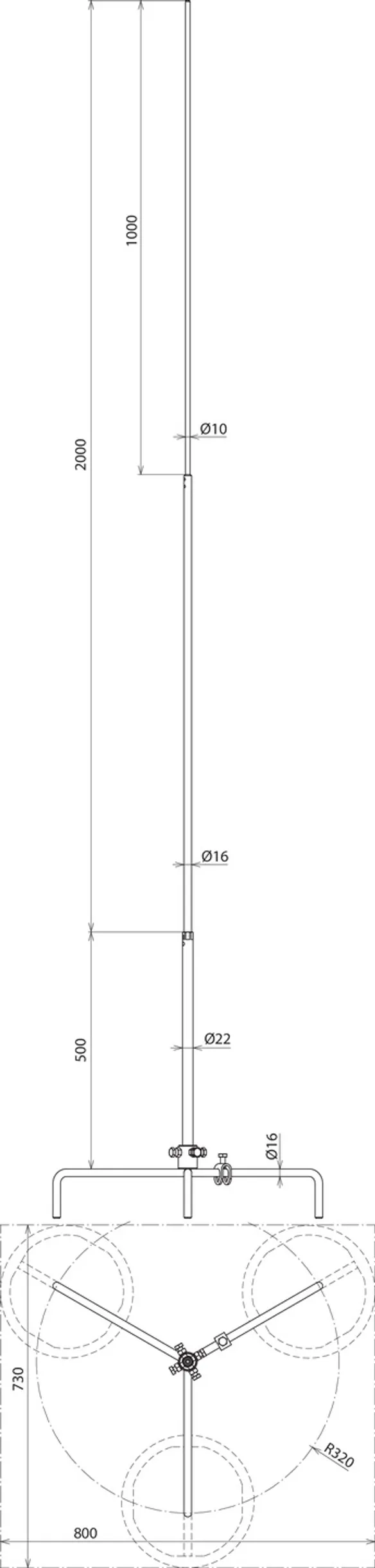 | Space required for tripod with 3 bases, 8.5 kg each (l x w) | 730 x 800 mm |