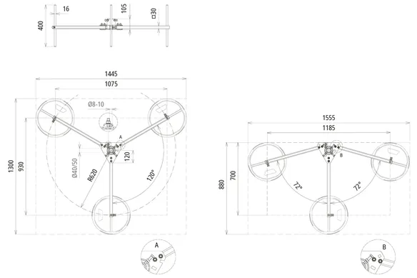 For air-termination rods D40, D50 and D60, DEHNiso Combi supporting tubes with air-termination rod / tip or HVI Conductor installed in / on the supporting tube.