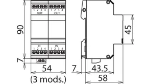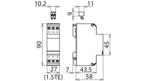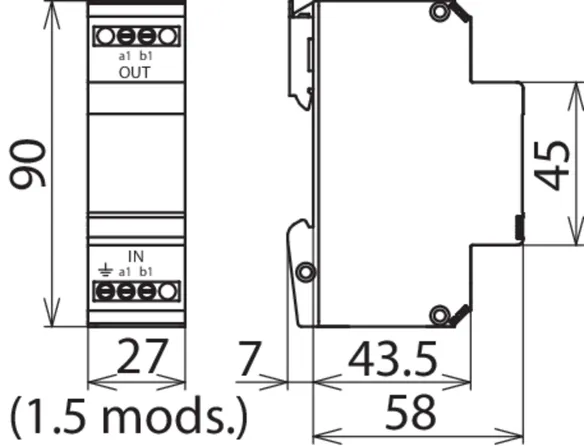 Energy-coordinated and leakage-current-free surge arrester for a/b lines, ISDN Uk0 or ADSL with RJ45 connections and additional screw terminals. Pinning of the RJ45 sockets is compatible with RJ11/12. The parallel screw terminals are more robust than the RJ45 sockets and increase the total nominal discharge current to 10 kA.
