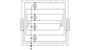 Universal arrester for Industrial Ethernet, Power over Ethernet (IEEE 802.3 compliant up to PoE++ / 4PPoE) and similar applications in structured cabling systems according to class E up to 250 MHz. Protection of all pairs by means of powerful gas discharge tubes and one adapted filter matrix per pair. Fully shielded type with sockets for DIN rail mounting (up to 1 Gbit Ethernet).