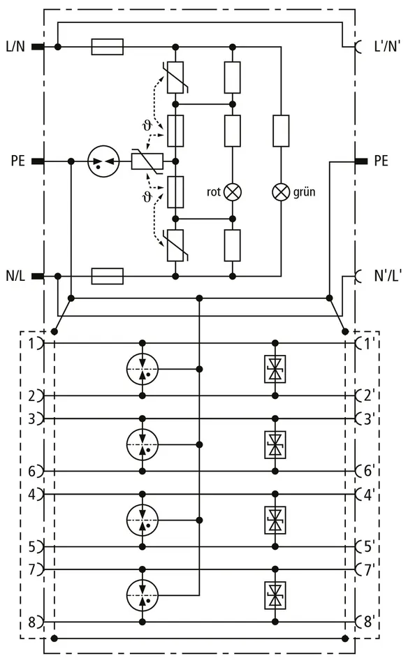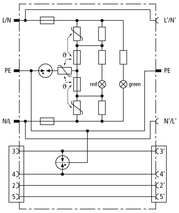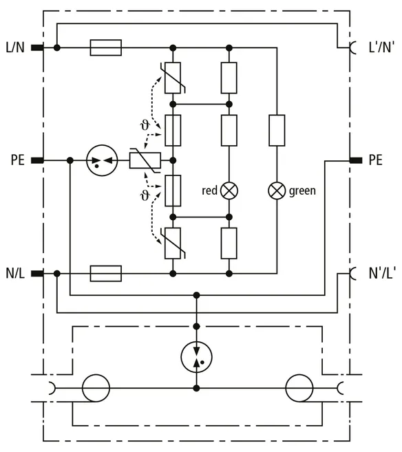 | Total discharge current (8/20 µs) [L+N-PE] (Itotal ) | 5 kA |