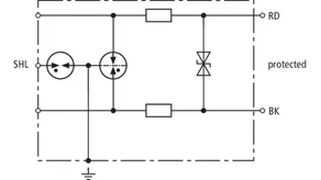 Surge arrester with a low-capacitance protective circuit for protecting intrinsically safe measuring circuits and bus systems, meets FISCO requirements. Insulation strength > 500 V to earth.