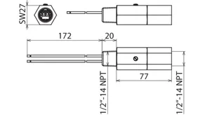 For mounting on (field / device side) 1/2-14 NPT female thread / 1/2-14 NPT male thread