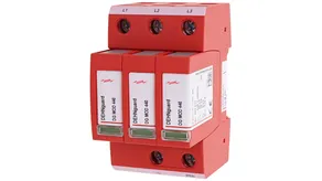 Modular surge arrester (3+0 configuration) with a rated varistor voltage Umov = 750 V a.c.; FM version with floating remote signalling contact.