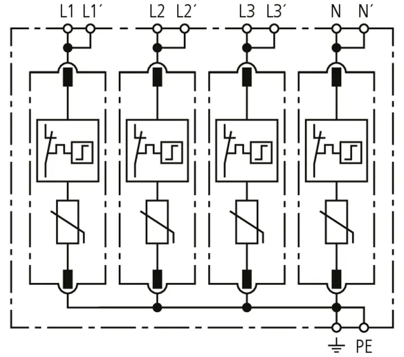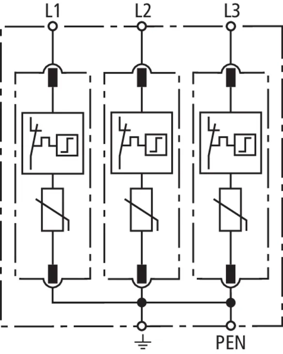 • High discharge capacity due to heavy-duty zinc oxide varistors / spark gaps