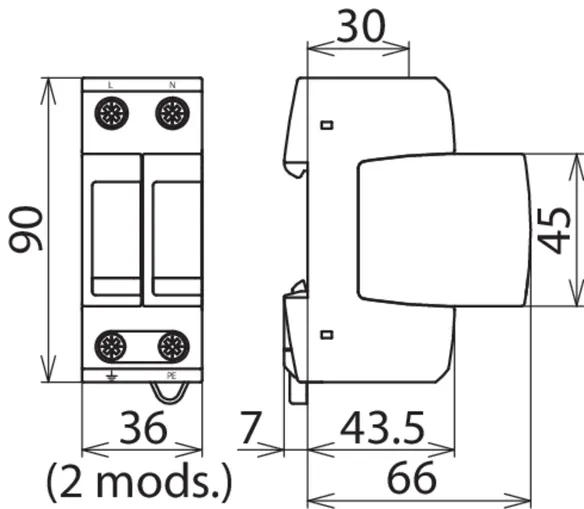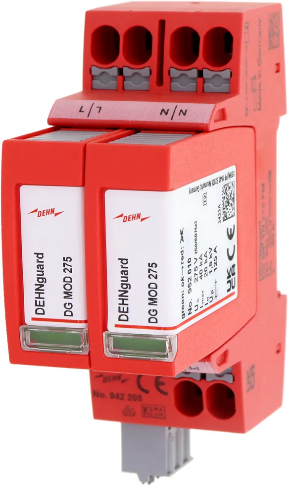 Modular surge arrester for use in single-phase TT and TN systems (1+1 configuration).