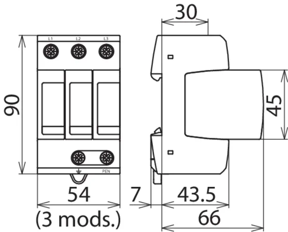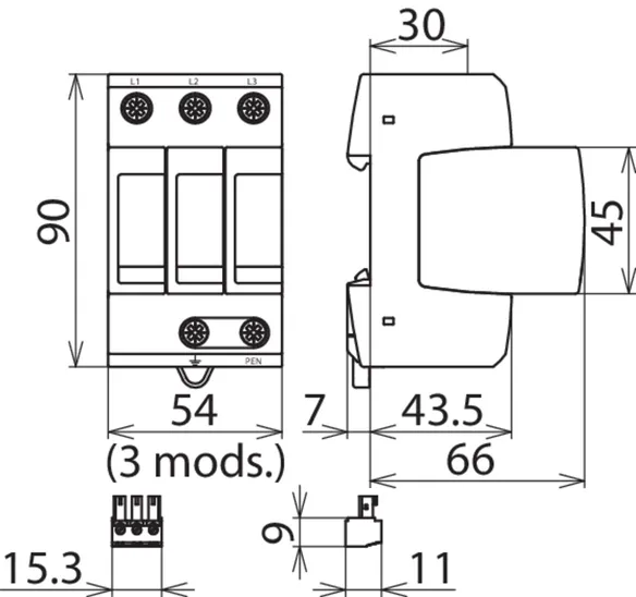 400/690 V TN-C systems, Width: 3 modules
