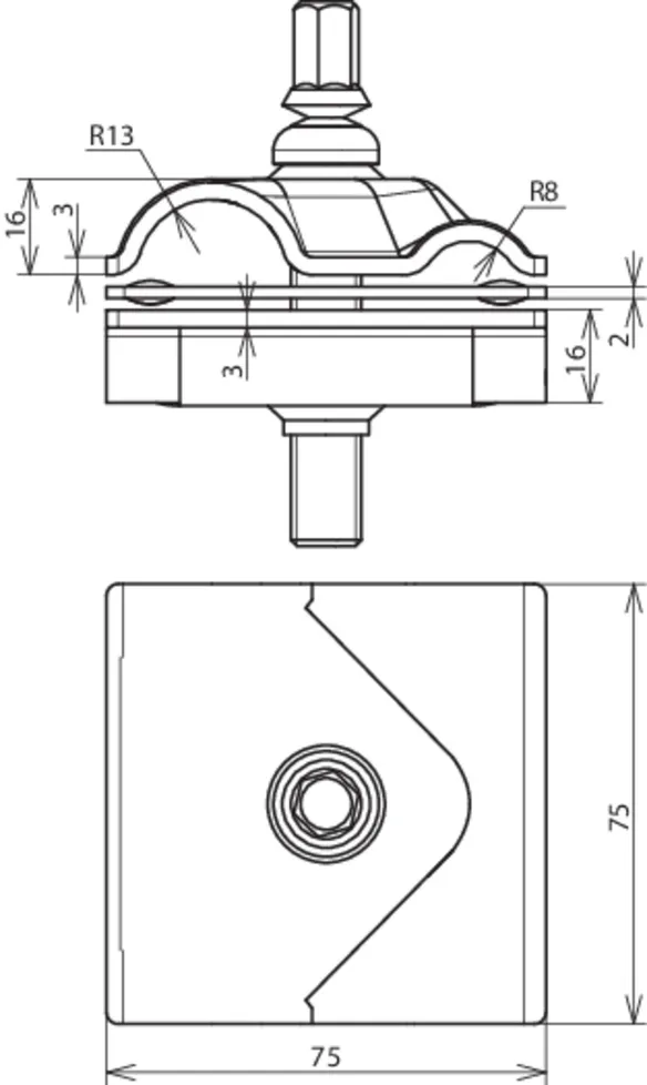 Same design as Part No. 308 041, but with StSt (V2A) M12x65 mm AF10 tear-off screw, with tear-off torque 35 +/-3 Nm, instead of standard hexagon head screw