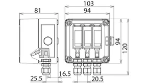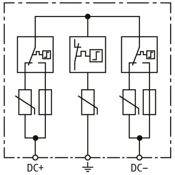 | Max. discharge current (8/20 µs) [(DC+/DC-) --> PE] (Imax ) | 25 kA |