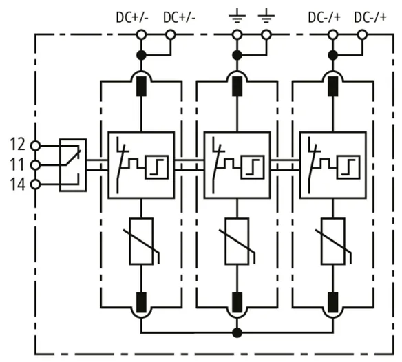 Nominal discharge current (8/20 µs) [(DC+/DC-) --> PE] (In ) 12.5 kA