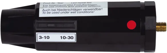 The nominal voltage selector switch allows to switch between two nominal voltage ranges. For safety reasons, the voltage detector can only be switched on if the selector switch is switched to the most sensitive range of (3 kV to 10 kV or 6 kV to 20 kV). The switch snaps into the relevant position, thus providing protection against inadvertent switching. A magnetically operated, wear-resistant reed switch changes the switching position.