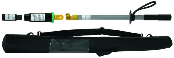The green ring on the ASP distance voltage detector with category "L" electric field sensor is used to make contact with the last earthed protective fitting in such a way that the electric field sensor points in the direction of the overhead conductor fixed at the other end of the insulator.