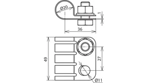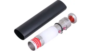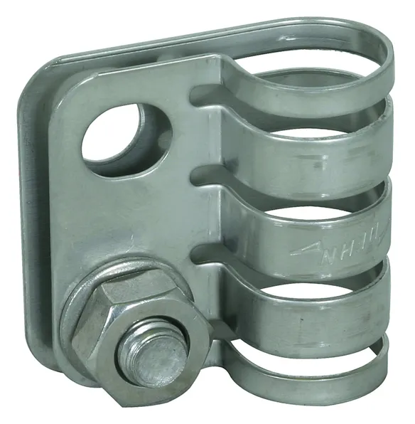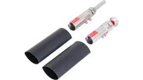 Fixing kit for installation of the HVI long Conductor on HVI long supporting tubes, consisting of a connection plate (4x, including two self-locking nuts with serrated bearings) and a fixing ring with four slotted conductor holders (Ø20 mm) for the sealing end (including two cable ties with plastic holder halves).