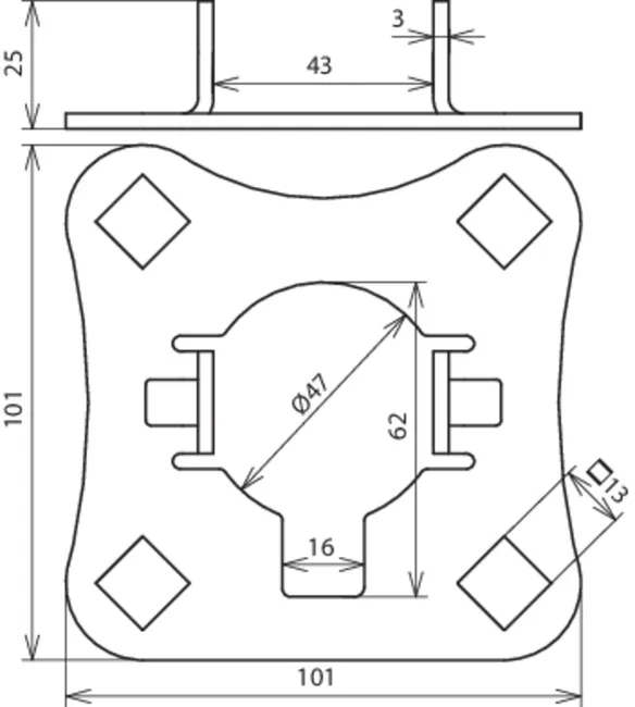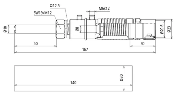| Connection | Bolt Ø10 mm, L 50 mm with M12 thread with spring washer |