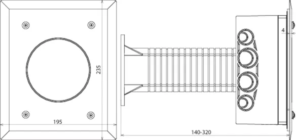 It is continuously adjustable from 90-140 mm. Thanks to the additional spacer, the test joint box can be used for insulation material thicknesses up to 320 mm.