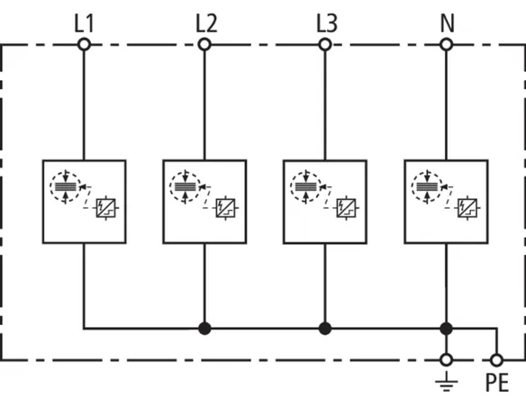 | Lightning impulse current (10/350 µs) [L1+L2+L3+N-PE] (Itotal ) | 30 kA |