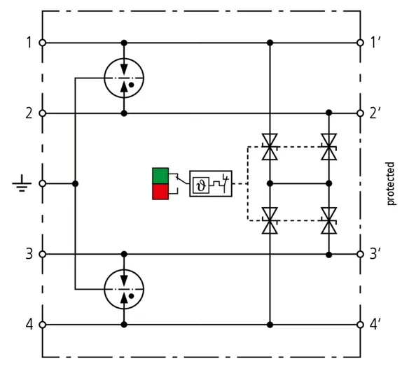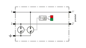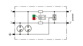 Space-saving, compact surge arrester with a width of 6 mm and push-in connection technology with status indication. Finely limiting, single-stage surge protection with powerful diodes for protecting two single cores sharing a common reference potential as well as unbalanced interfaces.