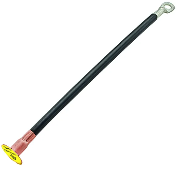 The earthing bridges are designed for earthing, return circuits and equipotential bonding in railway line applications. The version for earthing large pipes is intended for use with pile and large pipe foundations. The product consists of a copper cable with a pressed-on sleeve and stainless steel connection plate with integrated boreholes for the formwork fixing at one end, and a cable lug at the opposite end. The cable lug is used to establish a short-circuit-resistant connection to the pile or large pipe foundation. The flexibility of the cable simplifies installation in the reinforcement for the user. This earthing bridge also has the technical approval of DB Netz AG and can be used there without hesitation in planning.