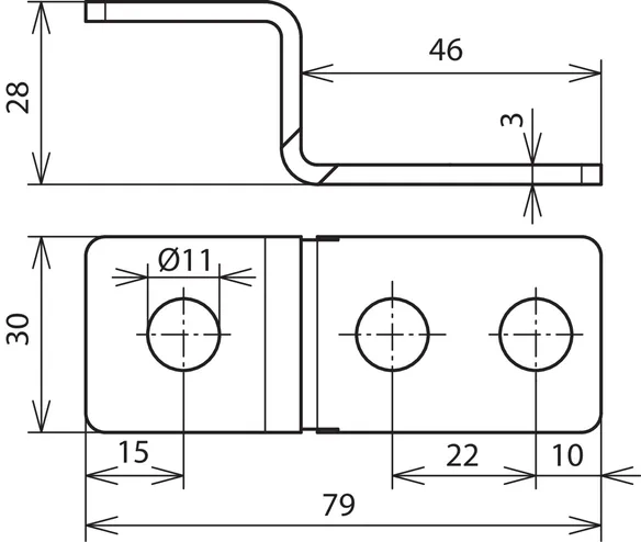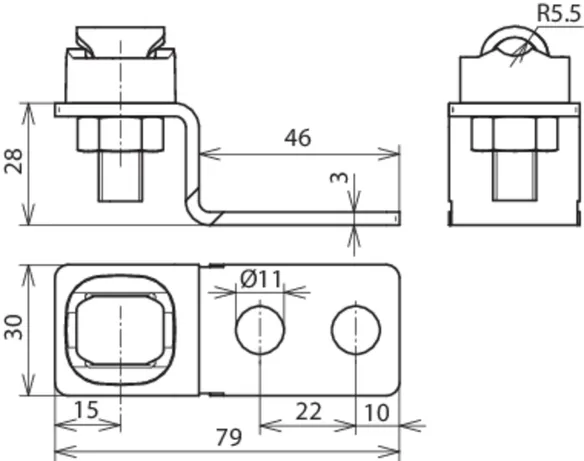Dimensions 11x11 mm, for connecting Rd, e.g. with KS connector (Part No. 301 019), or Fl with M10 screws and nuts.