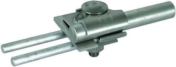 Air-termination rod clamps for connecting air-termination rods/tips to one or two conductors.