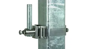 For fixing as well as lightning current carrying contact of the air-termination rod, e.g. on metal substructures of photovoltaic (PV) installations (square hollow profile); typically installed on steel frame or reinforced concrete structures. When mounted on pipes, the pressure plate (flat plate 2x angled) has to be removed. Two pipe clamps have to be installed on each air-termination rod.
