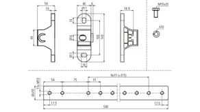 Adapter for non-sparking Ex equipotential bonding bar PAS EX for connecting a flat conductor. For use in potentially explosive areas of Ex zones 1 and 2 (gases, vapours, mists) up to explosion group IIC as well as Ex zones 21 and 22 (dusts). Both indoor and outdoor installation permissible.