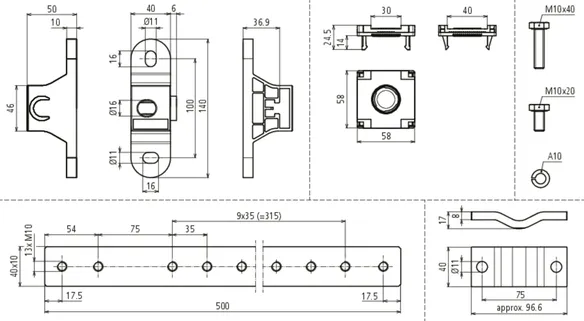 | Max. short-circuit current (AC 50 Hz / DC / 5 s) St/tZn 30x3.5 mm / 40x5 mm | 1500 A / T4 |