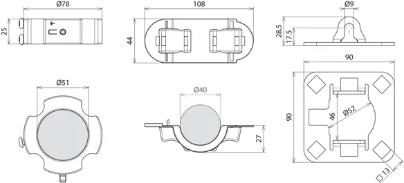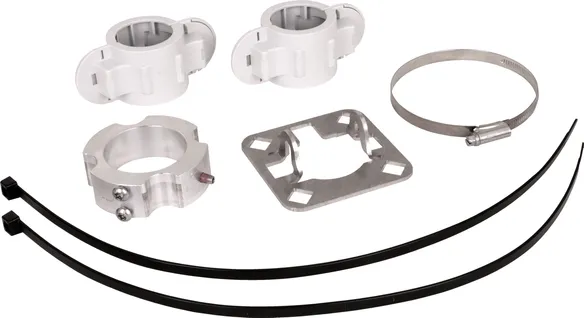 Fixing kit for attaching the HVI light plus Conductor to the HVI light plus supporting tubes, Ø40 mm, consisting of connection plate and fixing ring with stainless steel clamp for the sealing end (including four plastic holder halves and two cable ties).